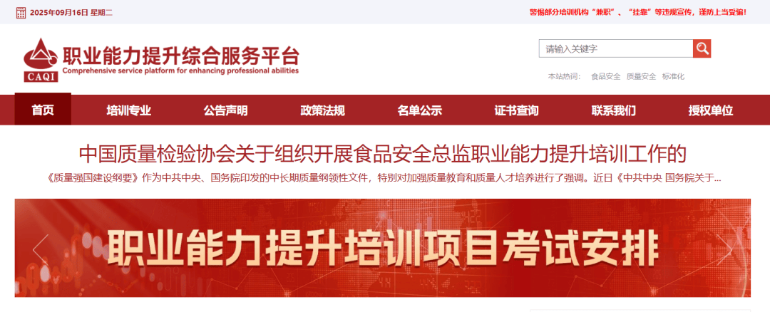 第一步:正在旅逛器输入进入 中国质量查验协会官网,第二步:官网页面下滑点击“职业 能力提拔培训栏目” ,进 入职业能力提拔分析办事平台。